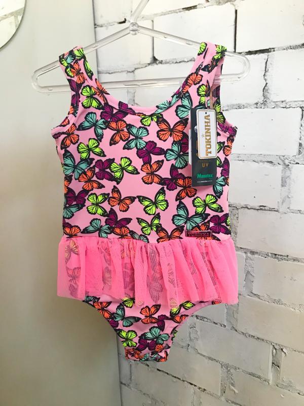 Maio confeccionado em tecido com proteção UV50+ que bloqueia pelo menos 98% da radiação UVA e UVB. Detalhe charmoso ´para o babado em tule.